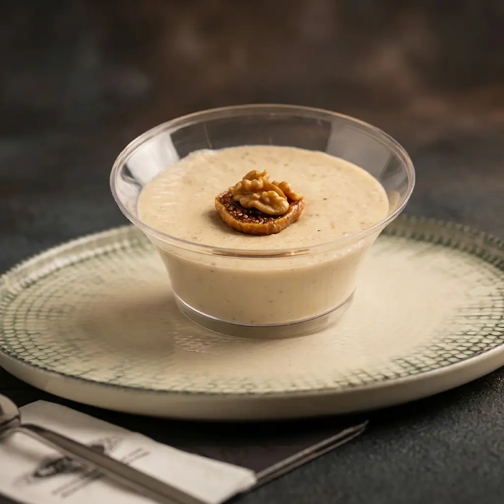 - İncecik dilimlenmiş incirler ve çıtır çıtır ceviz parçaları ile zenginleştirilmiş muhallebi, damak tadınıza hitap edecek.
