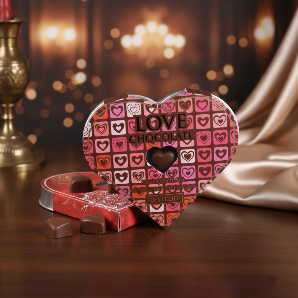 Sevdiklerinize özel bu kalp şeklindeki hediye kutusu, içerisinde 10 adet lezzetli sütlü çikolata barındırıyor. Romantik tasarımı ve birbirinden nefis çikolatalarıyla özel günlerin vazgeçilmez hediyesi. Aşkın ve sevginin en tatlı ifadesi olan bu set, sevdiklerinizi mutlu etmek için harika bir seçenek